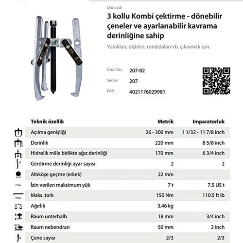 Kukko 207-02 3 Ayaklı Kombine Çektirme 300-220 mm