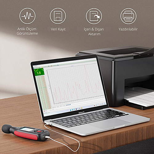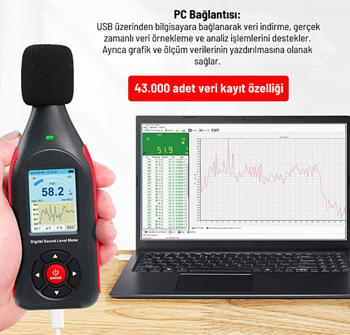 değerleri ile düşük seviyeli ortam seslerinden yüksek gürültü kaynaklarına kadar doğru ve güvenilir ölçüm sağlar.