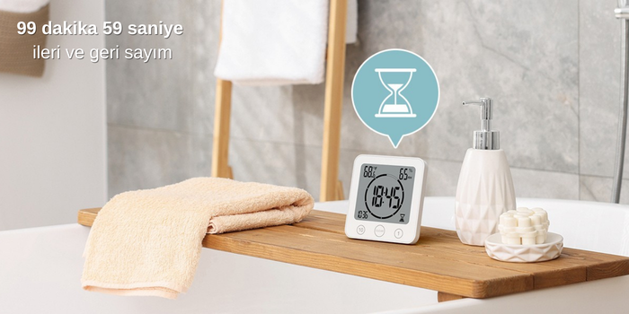 ✓ Zamanlayıcı, saat, sıcaklık ve nem ölçümü tek cihazda