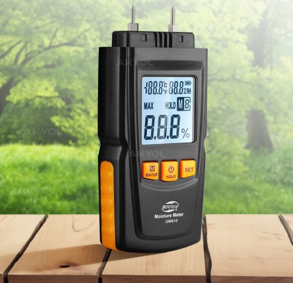 Benetech GM-610 ahşap, tahta ve ahşap benzeri nem ölçer; probları vasıtasıyla temas ettirdiğiniz ahşap yüzeylerdeki nem miktarını kolay bir şekilde ölçmeniz için kullanabileceğiniz ölçüm cihazıdır.