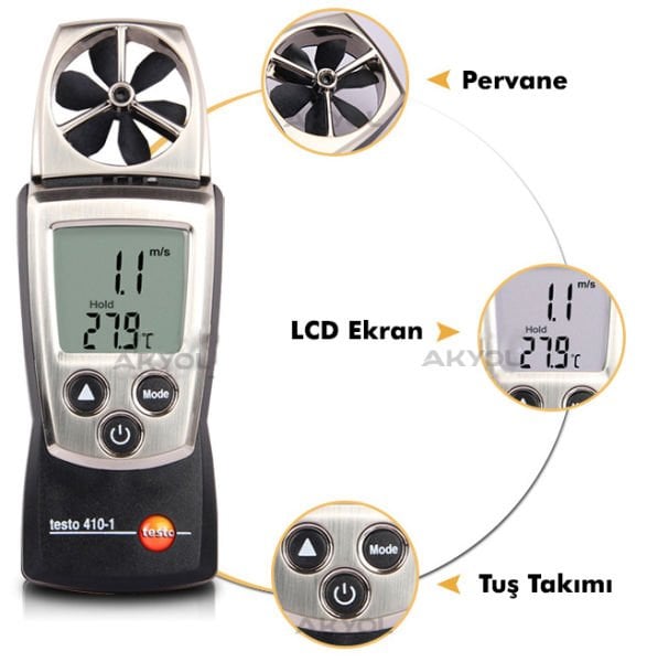 - Testo 410-1 rüzgar ölçüm cihazı 40 mm çapındaki hassas pervanesi ile entegre ölçümler yapabilmenizi sağlamaktadır.