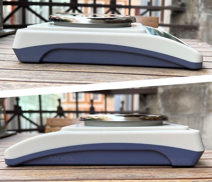 - Terazinin stabilitesi, alt kısmına yerleştirilmiş kauçuk ayaklar sayesinde artırılmıştır, bu sayede cihaz, ölçüm sırasında maksimum düzeyde doğruluk ve güvenilirlik sunar.