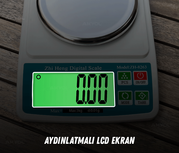 - ZH-8263, 0.01 gram duyarlılıkla ölçüm yapabilen ve maksimum 3 kilogram ağırlığa kadar tartım kapasitesine sahip bir dijital hassas terazidir.