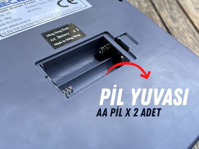 - Dijital terazi 3V adaptör veya 2 adet AA pil ile birlikte çalışmaktadır. 3V adaptör ile çalışmak istenildiğinde aşağıda bulunan önemli not kısmını okumanız rica edilir.