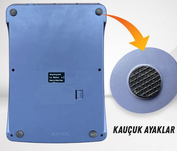 - Dijital terazinin alt kısmında bulunan kauçuk ayaklar sayesinde