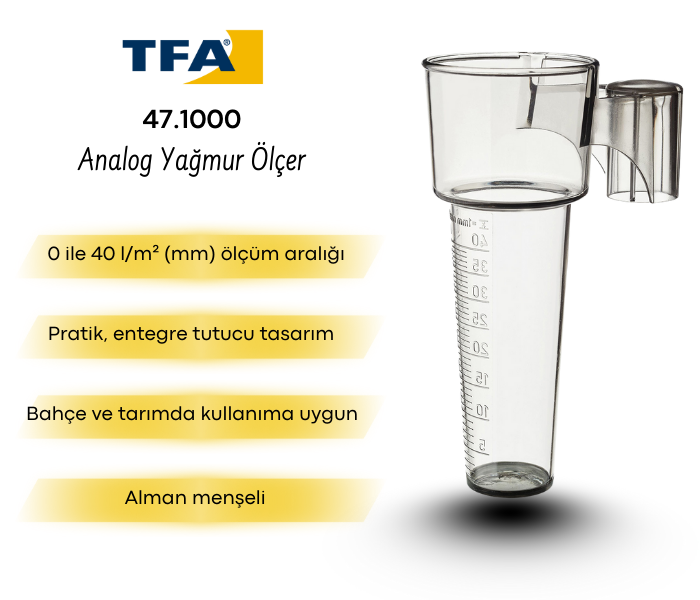 TFA 47.1000 Analog Yağmur Ölçer Plüviyometre 0-40 mm | Bahçe ve Tarım Yağış Ölçümü